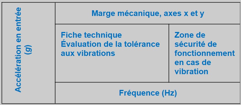 • Méthode d’essai : vibration aléatoire continue avec une plage d’amplitude et de fréquence définie.